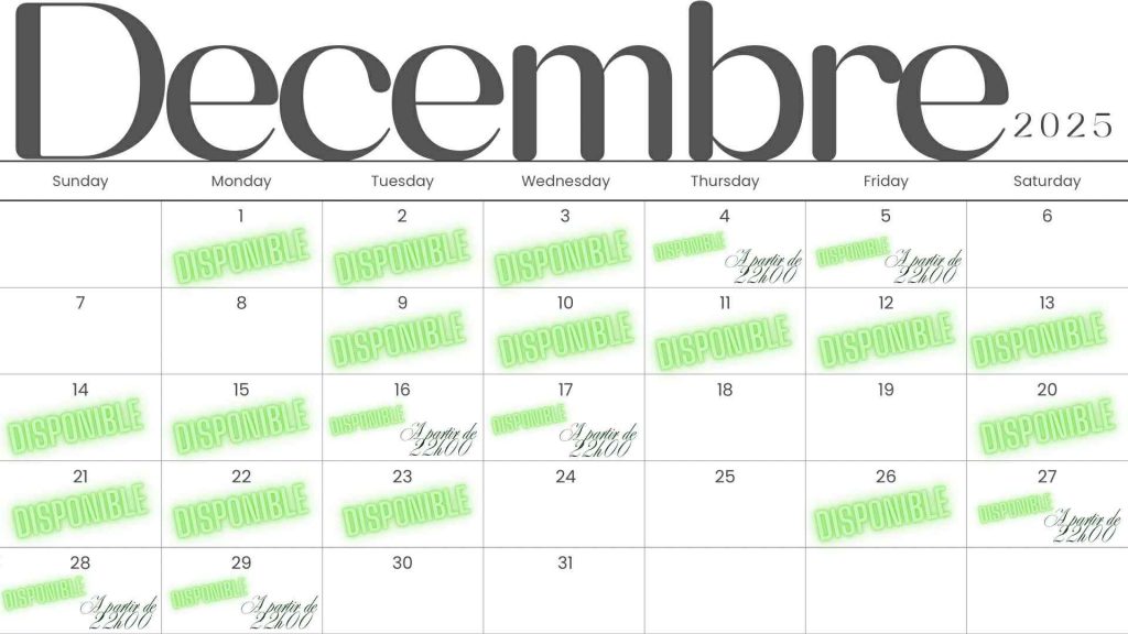Les disponibilités des mois prochains :